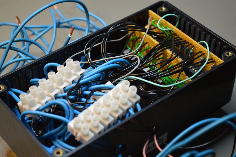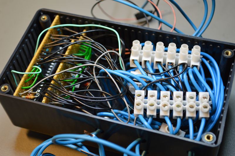 The solution worked just fine for loads like light bulbs, LEDs etc. But turned out to be a bit strange if electronics were connected, like a microcontroller. The current would find ways to leak through the connected module and back into the output of the fuse box. Which meant that the alarm would turn off. One way to remedy this is to place a diode in series with the outputs from the fuse box, but this introduces a voltage drop.