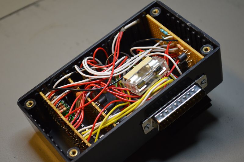 This is the rack box alarm handling unit. It controls the stack light, strobes and horn. Six different signals can be displayed, depending on the alarm situation. If mute is active; no signals is given. The power transistors for the stack light used to be located inside the module, hence the heat-sink. They have been moved to a separate power transistor unit.