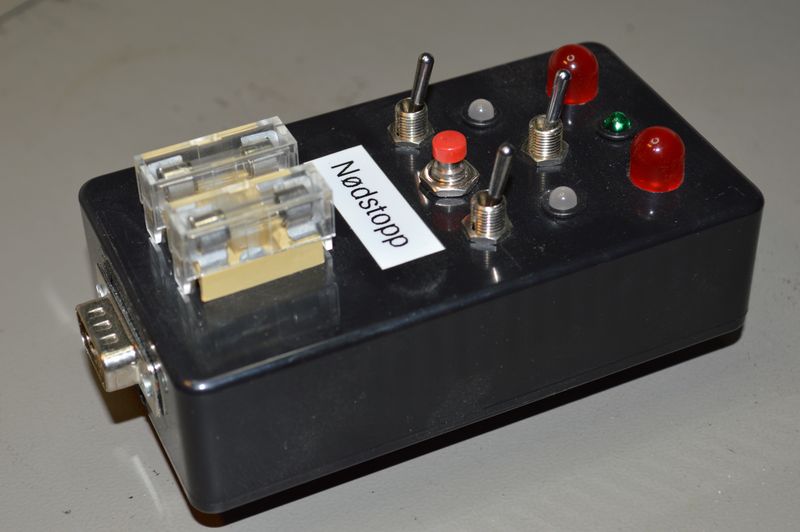 Two big red LEDs flash when the emergency power off is activated. An alarm output, used for a strobe, is also activated, but this can be disabled with a switch.