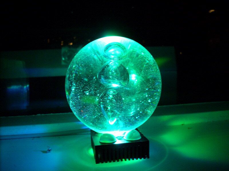 This mood light consists of a Prolight RGB 3W LED, a heat sink and four rubber feet. The four rubber feet form a base on which e.g. a glass ball, or something else transparent can be placed. It will be lit up by the LED and looks pretty cool. Powered by: 5V.