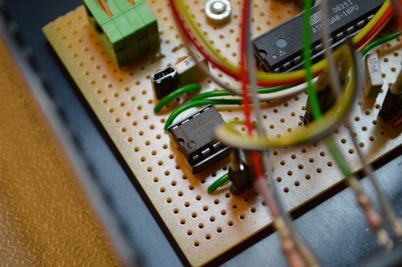 - 1 × AVR ATmega8-16PU, DIL-28, 16 MHz, 23 I/Os
