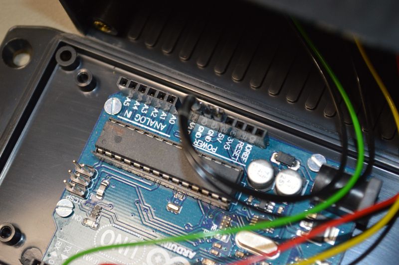 As long as the total current is below 400mA, the Arduino can be powered by the USB connection. This is perfect for our device, as it has to be connected to the computer anyways. One less wire, and adapter, to worry about 🙂