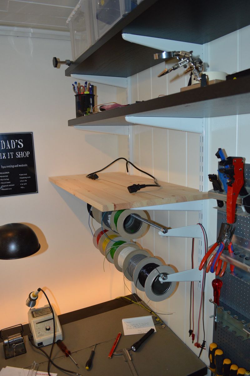 I ended up putting the soldering station on the new shelf as well and was able to free up even more work surface. All in all, I am happy with the result 🙂 It is still small, but it works, and it forces me to (at least try) to keep it clean.