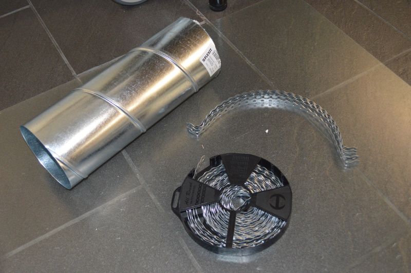 I wanted the new exhaust system to be dual purpose; remove hot air from the homelab and solder fumes from the electronics lab. So I got a T-branch and spiral tubes which I cut into suitable lengths.