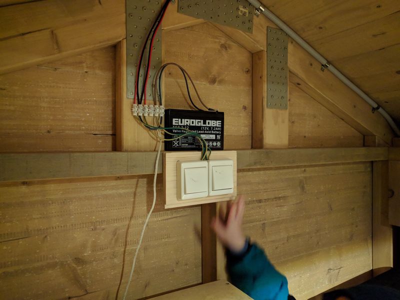 I built a garden playhouse, for the kids, and of course it needed some LED lights.