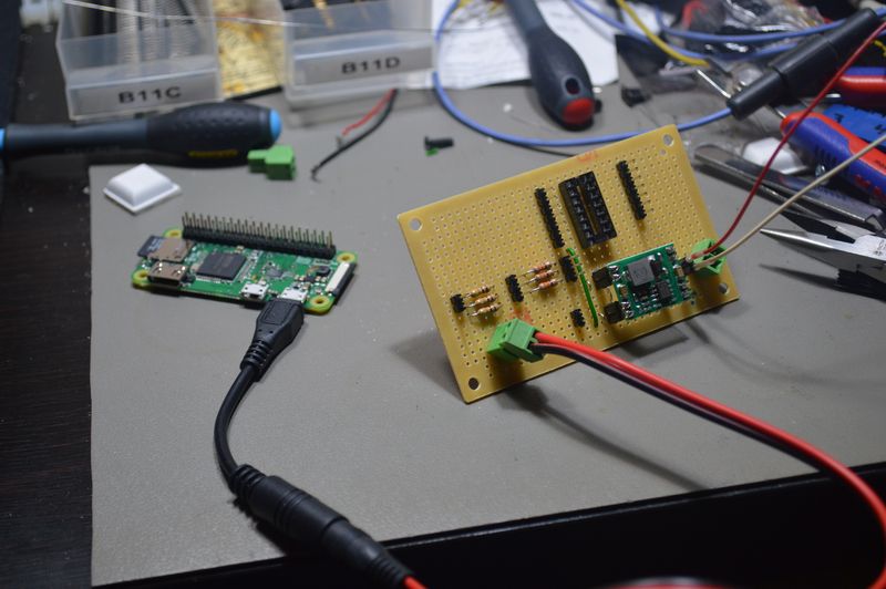 To power the Raspberry Pi Zero, I am using a 5V step-down converter, connected to the micro USB port on the Raspberry Pi. I’m using 12V as input, as that will power all the LEDs, the buzzer, and the strobe.