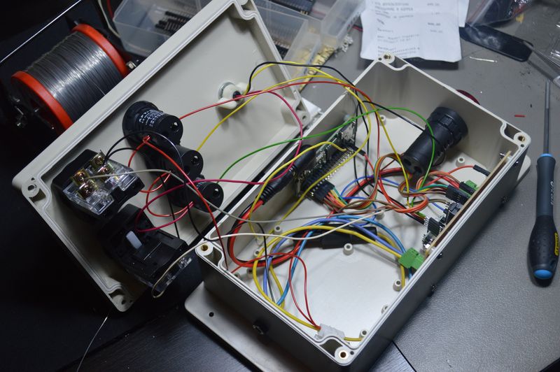 I then mounted the switches, LEDs, buzzer, and strobe and wired them to the prototype board.