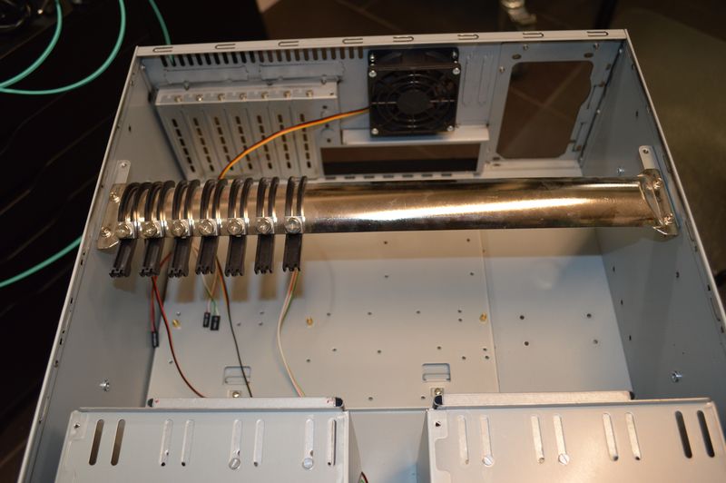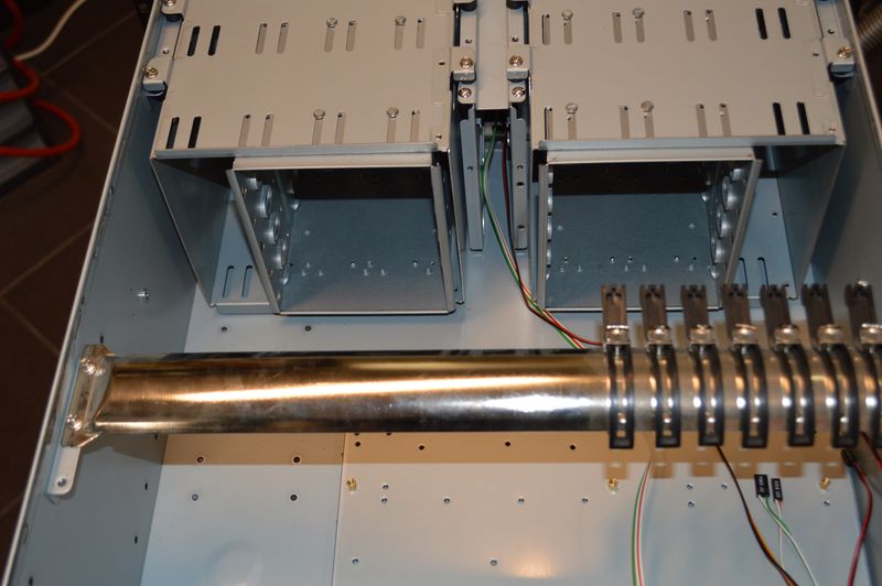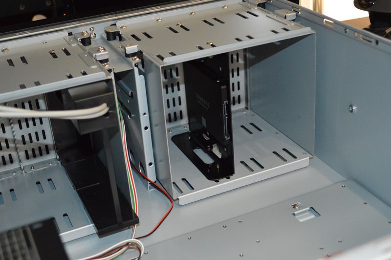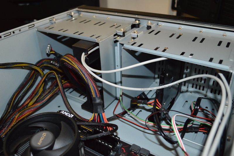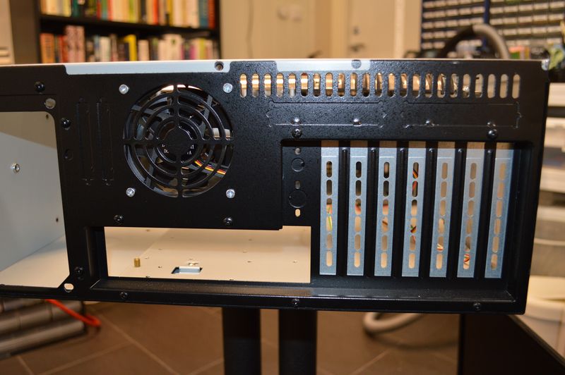 There really isn’t a lot to say here… You can fit one 80mm fan in the back. There is enough space for two 120mm fans in the front, one on each site, but you need a fan mount or disk bay with fan. I ended up with the latter.