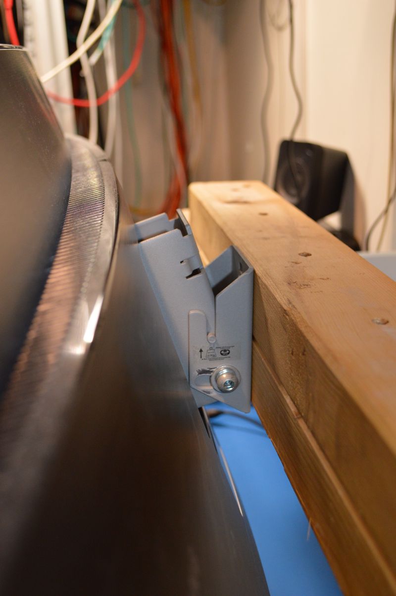 I secured the two-by-fours with heavy-duty zip-ties in the back, to prevent the heavy monitor toppling everything over.
