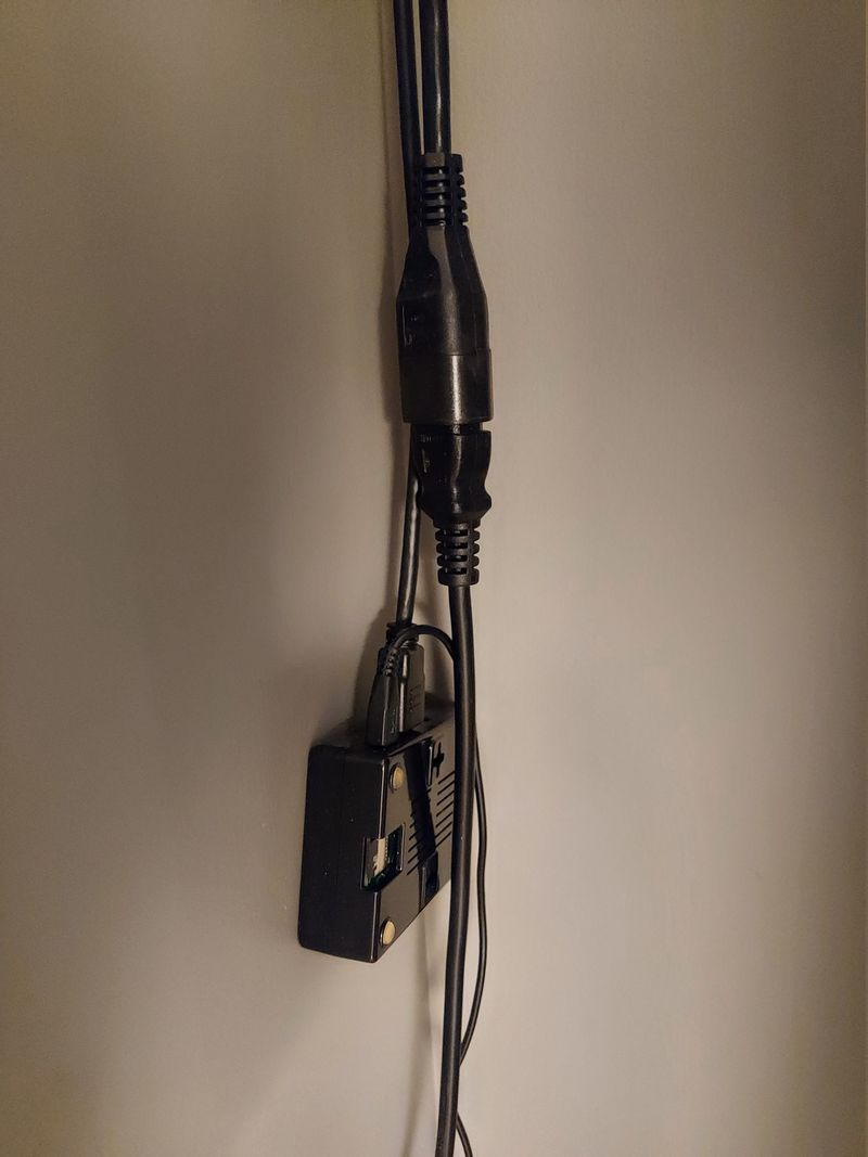 The Raspberry Pi is just dangling by the HDMI cable for now, may fix that also β someday.