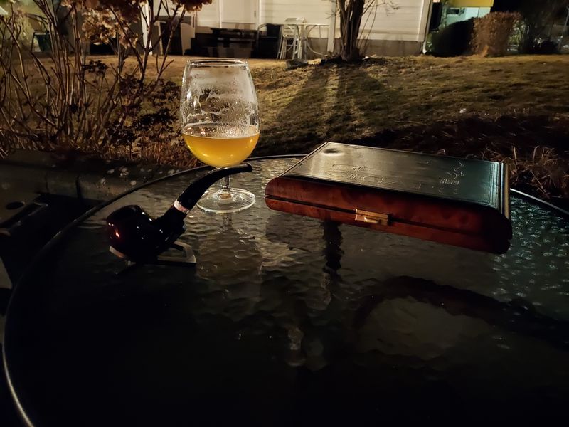 Last Friday I lit the fire pit, brought my newly purchased pipe; Gold Rush tobacco; pipe tool; lighter; and a fruity IPA, outside. Filled the bowl half full, as I have read it is important to break the pipe in gently. Got comfortable and lit the pipe.