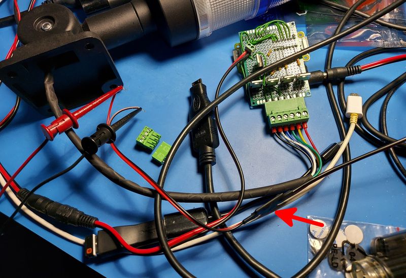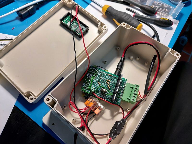 Since I’m no longer using my Alertmanager stack lights, I reused that HAT (Hardware Attached on Top). It has five Darlington transistors and a Darlington driver. I only need three outputs now, but having a few extra is always nice 😃