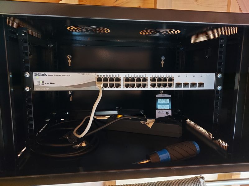 I dug a 10 meter trench to get wired network to my detached garage. Then installed a rack cabinet and PoE switch. Here is the build log 👇