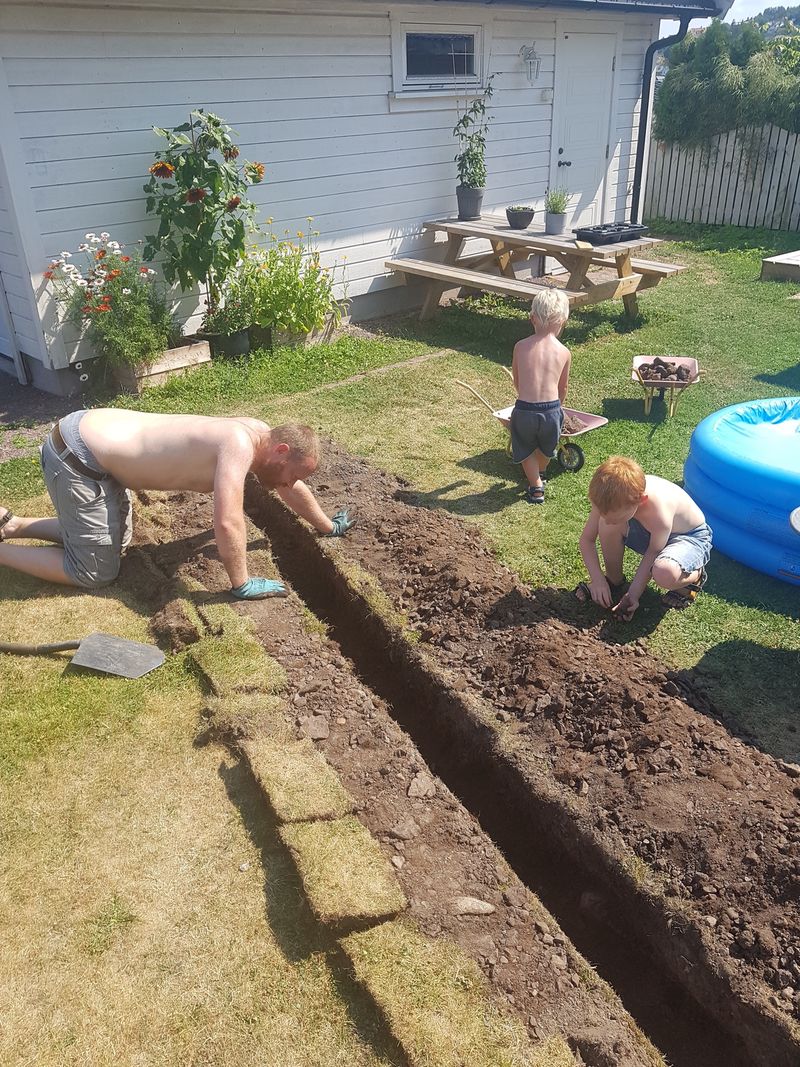 So the next day I enlisted the help of some additional workers — making the trench deeper and hauling the rocks away 👷
