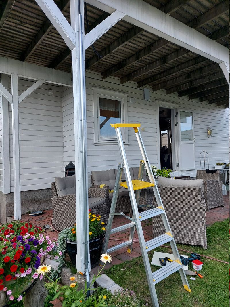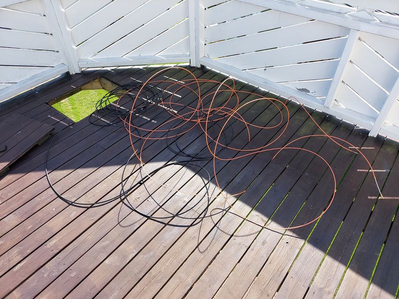 Continuing along the underside of the terrace, where it meets the cable from the outdoor access point. Then onto the wall of the house…