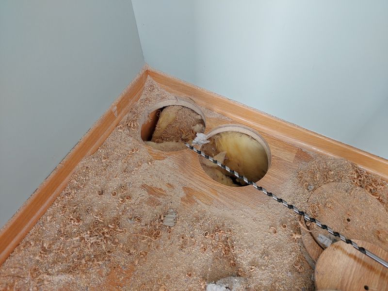 After confirming that nothing were interfering — they made two holes directly above, going into the attic.
