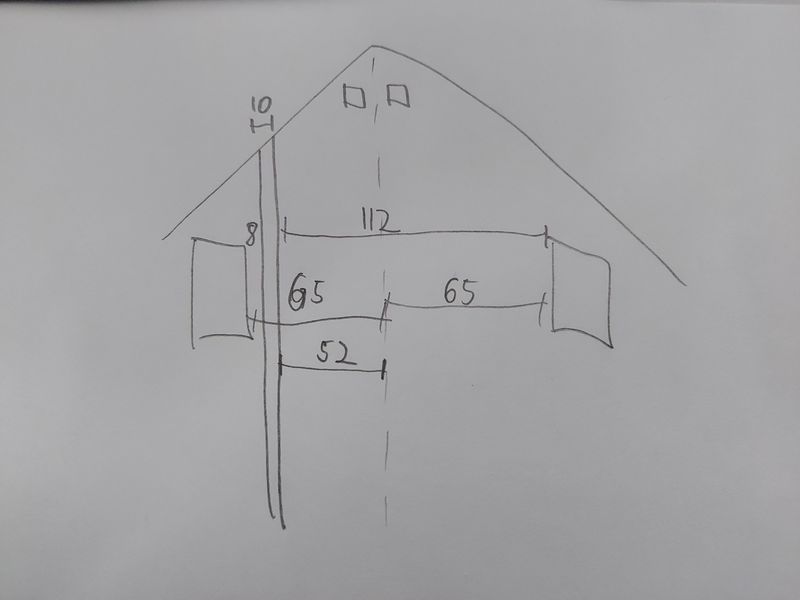 Next I tried to figure out where to look for the interior wall in the attic. I sketched out the distance between the windows and the interior wall, and when how those were placed in relation to the roof peak.