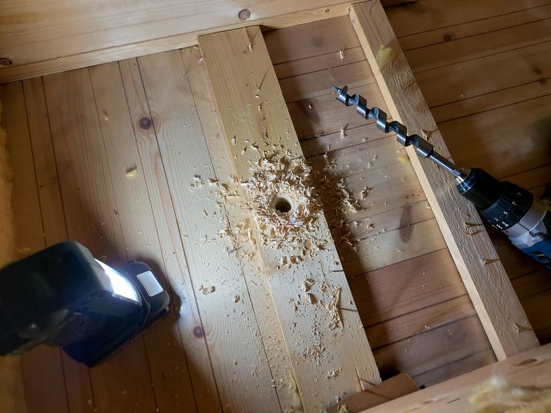 And drilled a 22 mm hole β large enough to fit the 20 mm conduit.