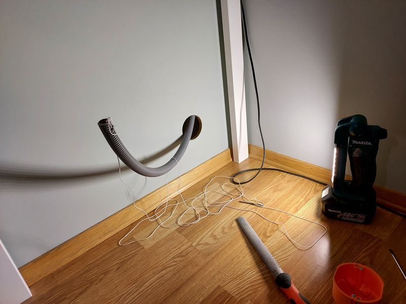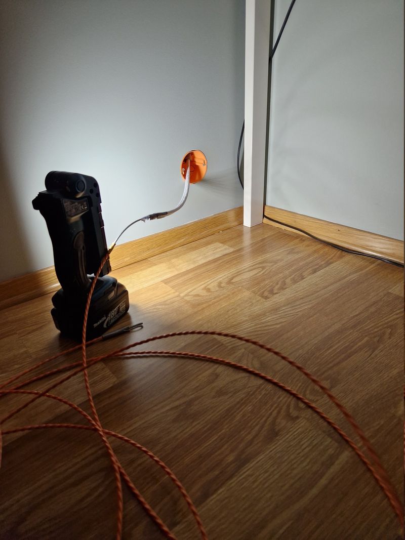 I used an existing conduit for the previous run, but the location wasn’t ideal. To get from the old network outlet, marked with 1 on the floor plan, to where I needed it β it had to cross in front of the terrace door 😕