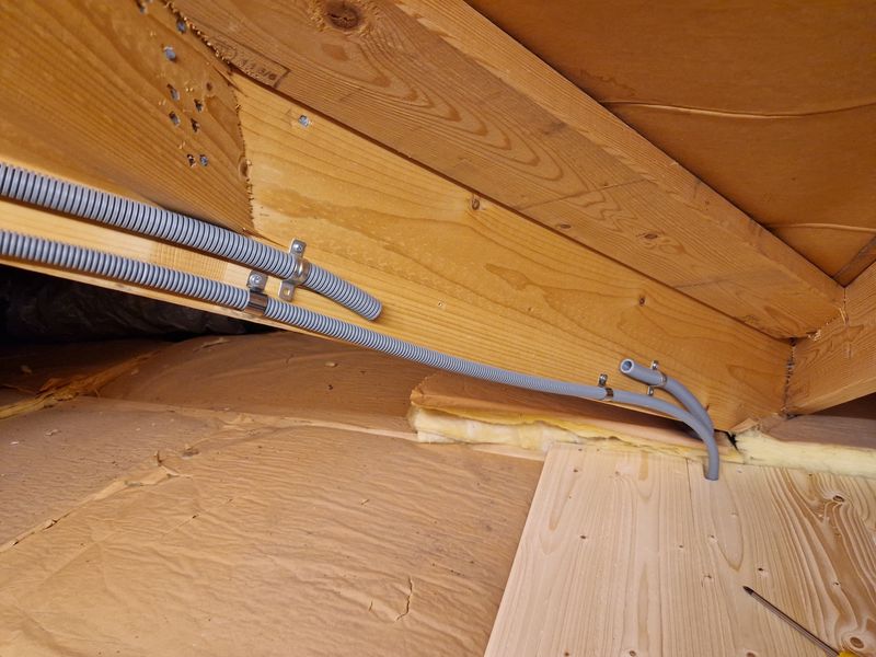 To make it easier to pull the CAT6 cable, and prevent condensation in the conduit, there is a gap between the two conduits. I will cover it with a metal cable protection later.