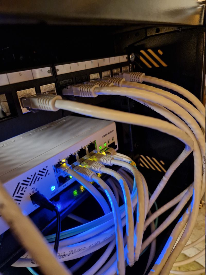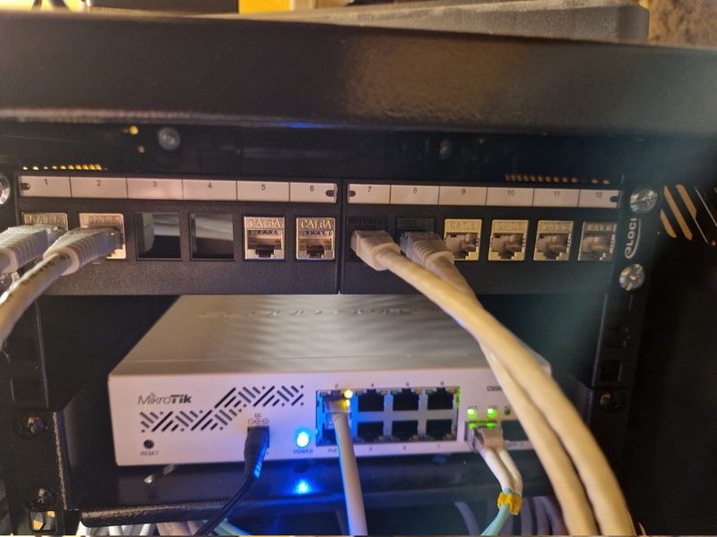 I patched the new network runs into the attic switch, using 0.5 m patch cables.