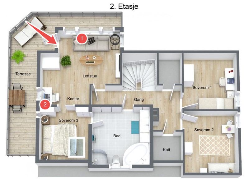 The new network outlet, marked with 2 on the floor plan, comes out right where I need it 👍