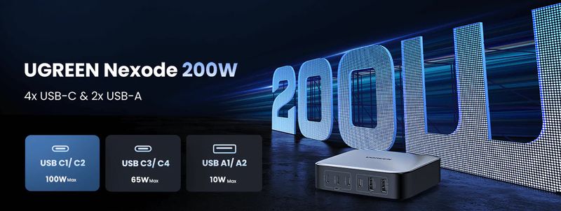 We already had a Ugreen Nexode 200W USB C GaN Charger — I tested and confirmed it was capable of charging the laptop 👍