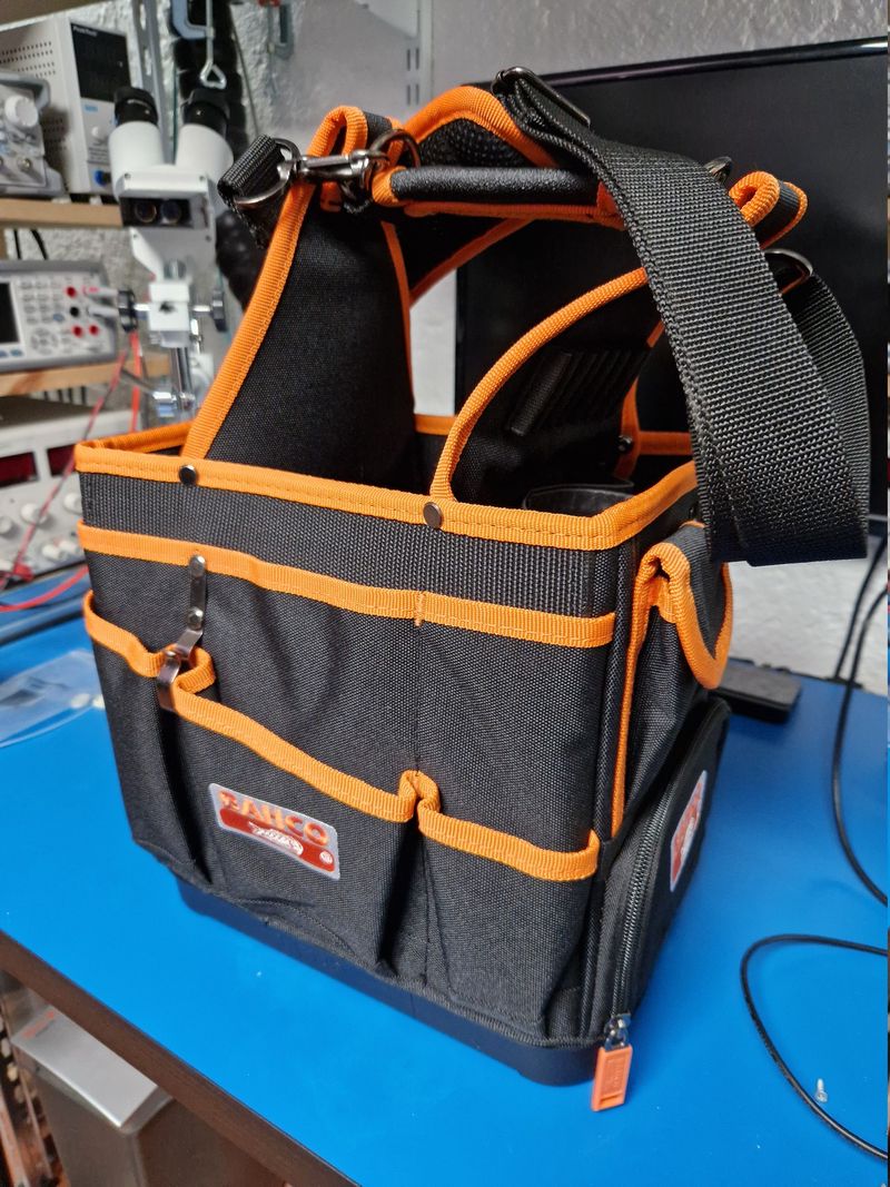 Since most of my tools are in the tool-trolley, which is very stationary, I’ve ordered 12 liter electrician fabric tool bag — Bahco 4750FB3-12. Allowing me to grab and carry some tools when needed.