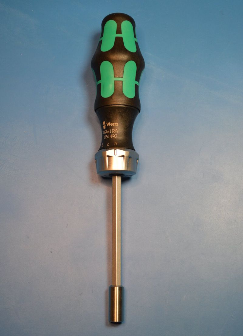 Next; I wanted an “all-round” screwdriver with ratchet function. This one has a 44 tooth cog wheel — allowing for precision work. And also contains six bits: Phillips, Pozidriv, and slotted.