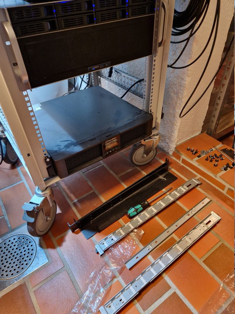 As part of my project to rearrange the rack, I mounted proper rack rails and removed the shelf that Zeta has been resting on for the last five years.