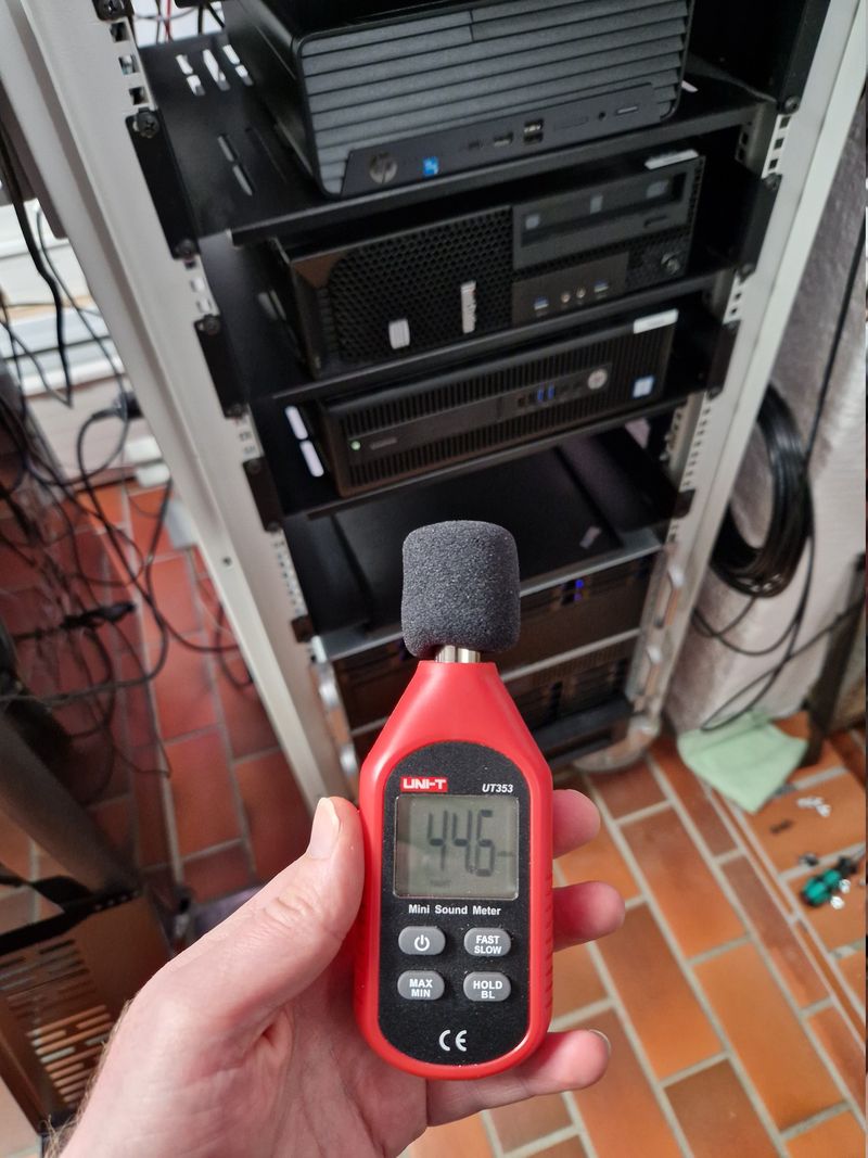 My servers are relatively quiet, I don’t have any small squealing fans or enterprise servers. My 4U Inter-Tech server cases have Noctua fans, and the small form factor machines are already pretty quiet.